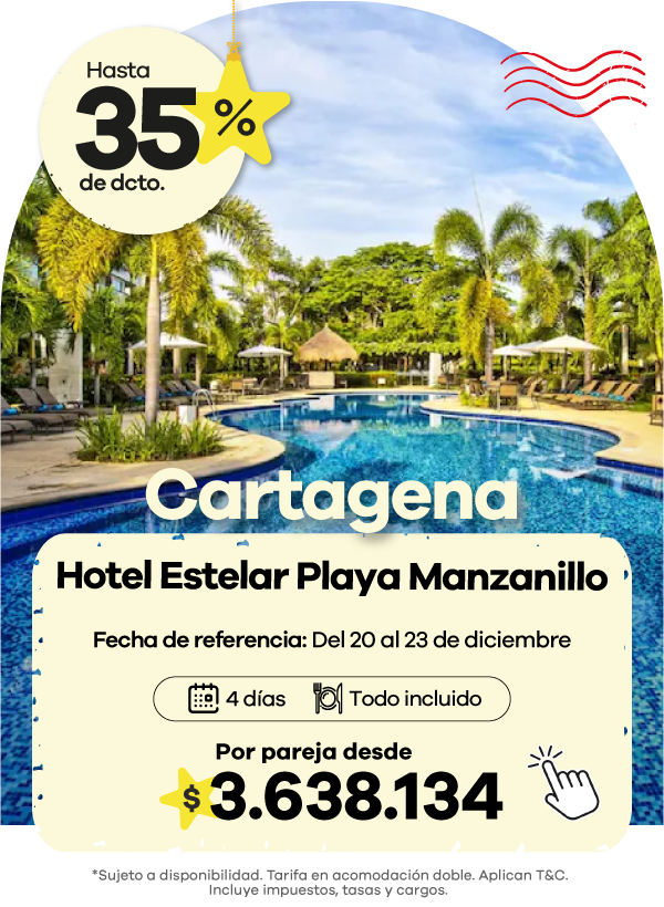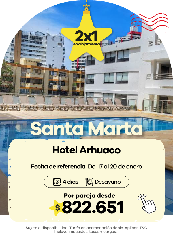 Con Viajes Éxito podrás viajar cómodo, seguro y a gusto al destino que desees en Colombia y el mundo para vivir unas vacaciones como las has soñado, disfrutando de toda la comodidad del hotel que buscas. En nuestra agencia tenemos una amplia oferta de productos y servicios para ofrecerte toda la calidad, por lo que en nuestra página web encontrarás hoteles baratos de muchas categorías para que escojas el que mejor se ajuste a tus necesidades y tu búsqueda. Encuentra hoteles cerca a las playas, en las mejores zonas y con excelentes servicios de habitaciones, alimentación, entretenimiento y mucho más al mejor precio. En Viajes Éxito encuentras hoteles baratos en Bogotá, Medellín, Cali, Cartagena, Santa Marta, Cancún, Panamá, Estados Unidos y muchas otras ciudades. Explora nuestro sitio web, compara los precios y planes que te ofrecemos, escoge el destino que más te guste y disfrutas de unas vacaciones soñadas.
