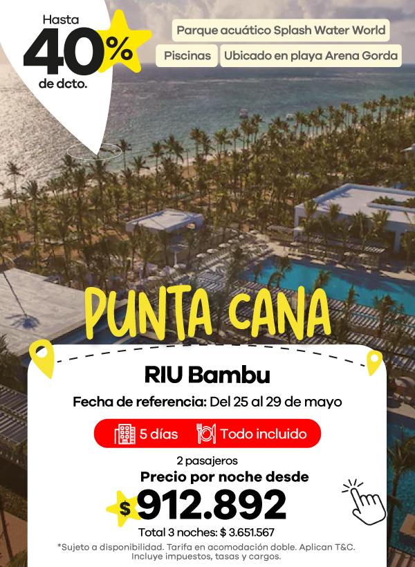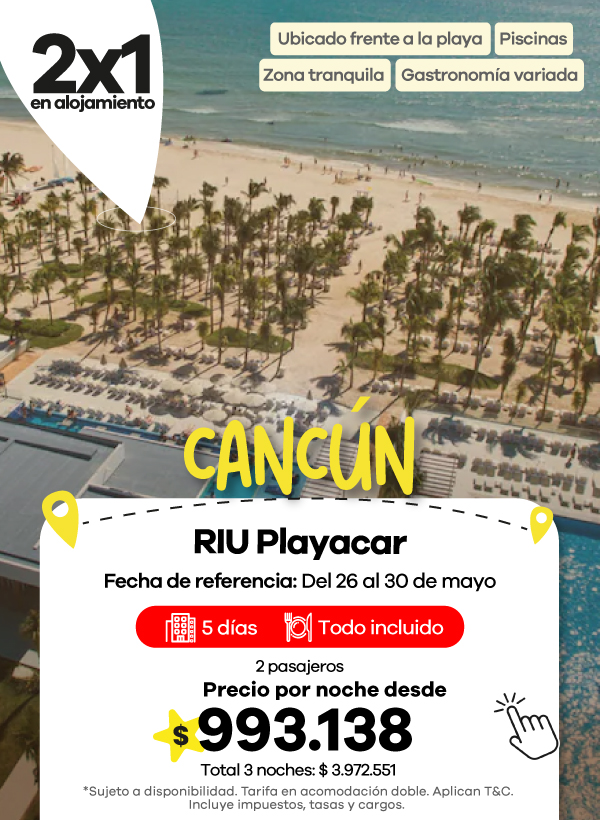 Hoteles RIU es una cadena de origen español con más de 60 años de experiencia en el servicio de alojamiento con presencia en más de 20 países alrededor del mundo, ofreciendo los mejores hoteles y servicios a sus huéspedes, para brindarles un viaje lleno de tranquilidad y confort en todo momento. En Viajes Éxito encuentras todo lo que buscas para que tus vacaciones sean eso que deseas, por eso te invitamos a comprar tus paquetes de viaje con nosotros y hospedarte en Hoteles RIU de Cancún, en México, o Punta Cana en República Dominicana. Disfruta de la magia del Caribe, de hermosas playas y atardeceres que te darán las mejores imágenes y fotografías, con toda la comodidad que los Hoteles RIU tienen para ti. Reserva en Viajes Éxito y conoce los encantadores paisajes de Arena Gorda, en Punta Cana o la Zona Corazone, en Cancún, donde vas a vivir grandes emociones.